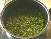 1. えんどう豆はたっぷりの熱湯で15〜20分ぐらい強火で茹でてざるにあげます。