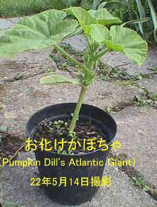 5月14日:菜園に植え付け前の苗。 6月27日:子どもの手と比べて。 8月18日撮影: オバケカボチャ収獲。 |