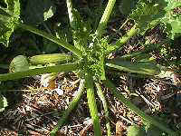 7月23日夏休み休暇から帰ってきた後ズッキーニの成長を覗いて見ると...。どひゃあ!私のふくらはぎに勝るとも劣らないほど充分に成長したズッキーニがそこにありました。あまりの大きさに立ちくらみが!へちまどころじゃないわよ。そんなのが3つも転がっているんだもん。スイスのご婦人ならこれを酢漬けピクルスにでもしそうですが、私はとてもそんな気は起きないので、そのままコンポストに直行させました。いい堆肥になるんだよ(^o^)